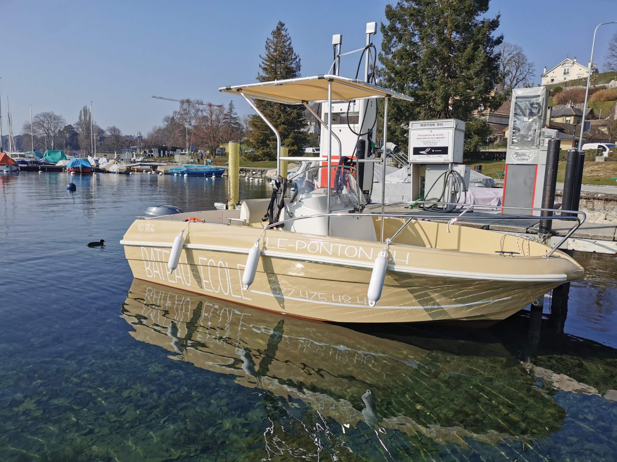 Le bateau est idéal pour l’apprentissage. Il est léger, puissant, très maniable et est équipé d’un toit pour vous protéger de la pluie ou du soleil. A part lorsque le vent souffle très fort, les cours peuvent avoir lieu par tous les temps.